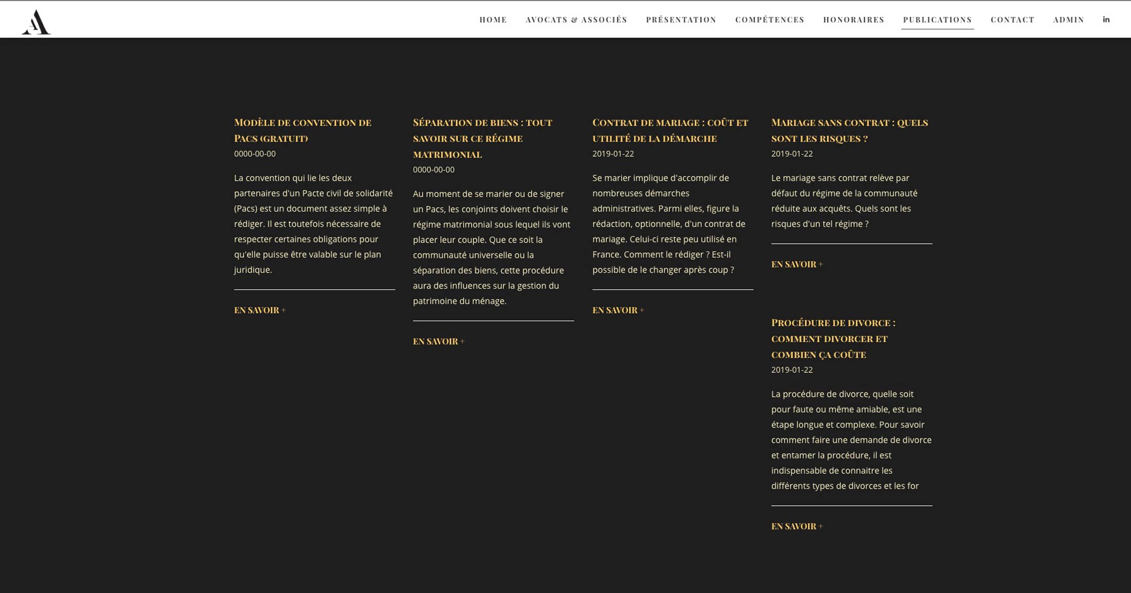 Nous vous proposons un véritable outil conçu entièrement pour répondre à l’ensemble des besoins de l’activité juridique. Répondant à toutes les contraintes d’ergonomie du web, avec un design épuré, ce site est le reflet de votre professionnalisme et de votre expertise. Nous créons avec votre collaboration votre site comprenant l’ensemble de vos informations professionnelles que vous pouvez ensuite faire évoluer vous-même avec une interface d’administration ergonomique et entièrement sécurisé